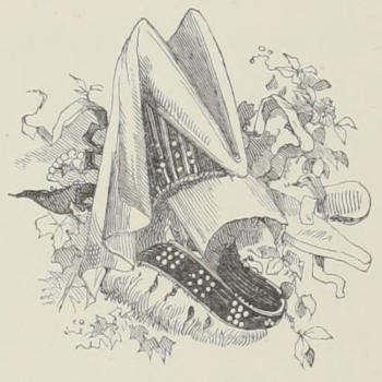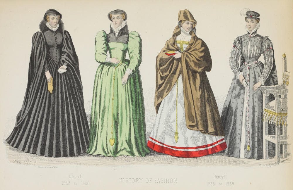 Fashions under Henri II.—The ruff—A satirical print of the time—Catherine de Médicis eats soup—The Italian taste—Regulations for dress—Crimson—Who shall wear silk?—Lines on velvet, by Ronsard—Rotonde—“Collet monté”—Spring-water—Style of gowns and head-dresses—Wired sleeves—Girdles—Caps, bonnets, and hoods—The “touret de nez”—The “coffin à roupies”—Shoes—A quotation from Rabelais 81