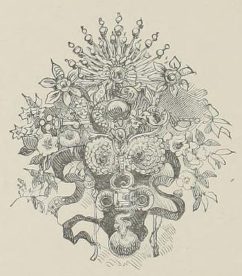 Louis XIV. commands—Court luxury and pleasure; disguises—The Temple jewellery—Fashion and etiquette—Successive fashions—Royal edicts—The “Tombeau du sens commun”—Dress of La Vallière—Of Mme. de Montespan—Costume of a lady of rank in 1668—The “échelles de Mme. de la Reynie”—“Transparencies”—Manufactures—Champagne, the hair-dresser—Female hair-dressers—“Hurluberlus” and Mme. de Sévigné—Moustaches for women; patches—Palatines—Slippers; high heels—Corsets; fans; sweet lemons—Dog-muffs—Hair dressed “à la Fontanges”—English style of dressing hair—“Esther”—Steinkerks—“Crémonas”—“Amadis” and Jansenist sleeves—Hair dressed “à l’effrontée”—Dresses of the Duchesse de Bourgogne—Mignardises 125