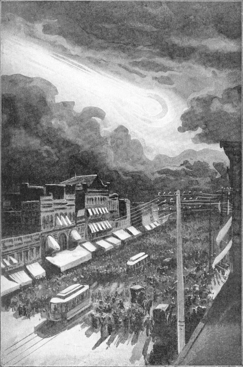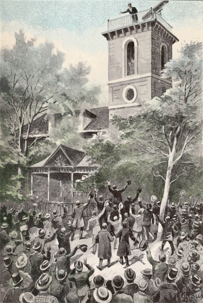 Des cris s’élevèrent de toutes parts, traduisant l’émotion de la foule. On s’agitait en tous sens, sans savoir pourquoi. Quelques-uns, parmi lesquels Mr Seth Stanfort et Mrs Arcadia Walker, coururent à toute vitesse du côté de la mer afin de ne perdre, du moins, aucun détail de la catastrophe.