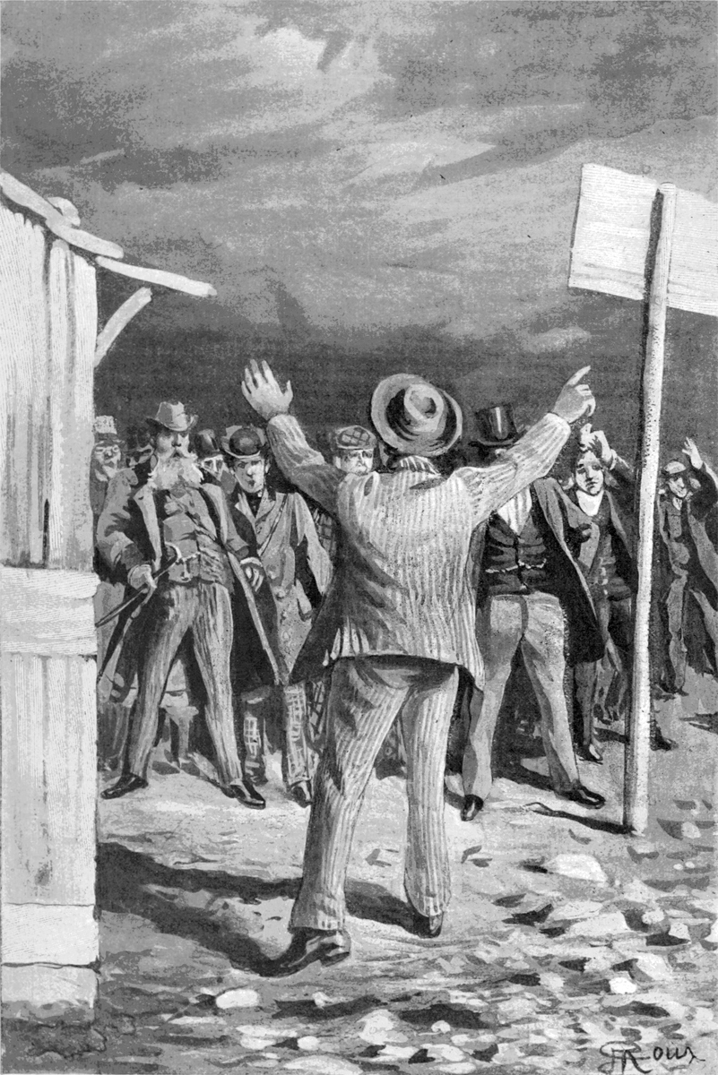 On le croira sans difficulté, puisque nous sommes en Amérique, c’est-à-dire chez le peuple le plus parieur qui soit en ce bas monde, des paris s’établirent touchant le retour prochain ou le départ définitif de l’étranger. Quelques enjeux d’un demi-dollar, ou même de cinq ou six cents, entre le personnel des hôtels et les curieux arrêtés sur la place, pas davantage, mais enfin enjeux qui seraient bel et bien payés par les perdants, et encaissés par les gagnants, tous gens des plus honorables.