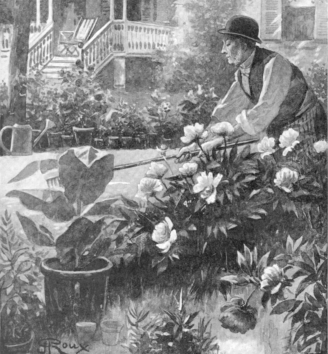 Mais un scrupule troublait le digne philosophe. Au troisième arrosoir, sa main inactive cessa de répandre une pluie bienfaisante sur les géraniums altérés.