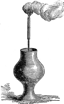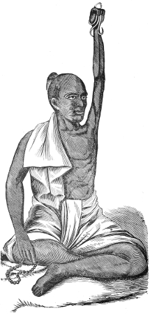 The Dervishes are Mohammedan monks. They are among the most curious devotees of the Moslem religion. They perform their wonderful feats on Friday afternoons in the mosques. Dr. Philip Schaff writes of one of their performances which he witnessed: “After the preliminary[749] exercises of prayer and prostration, they whirl around on their toes, ring within ring, without touching each other, for about an hour, until they are utterly exhausted. I saw thirteen of them all dressed in flowing gowns, and with high white hats of stiff woolen stuff; their hands were stretched or raised to heaven, their eyes half closed, and their minds apparently absorbed in the contemplation[750] of Allah. They made about forty or fifty turnings a minute. The Howling Dervishes swing their heads up and down, crying incessantly with all their might, ‘La llaha, ill’ Allah!’ and some other phrases, until they are stopped by sheer exhaustion.” All this is done for the same reasons for which the Fakirs of India, and the devotees of other nations torment their bodies.