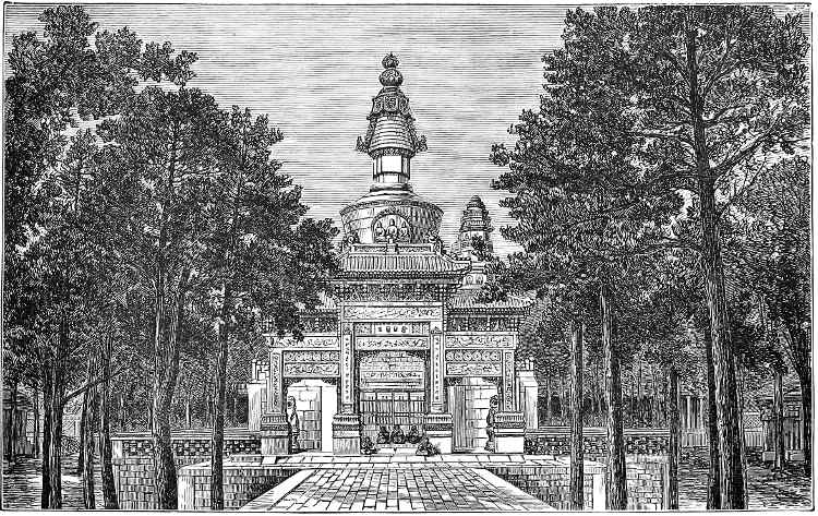 The jewel of India—the Koh-i-noor of its beauty—is the Taj, the tomb built by the Emperor Shah Jehan, the grandson of Akbar, for his wife, whom he loved with an[759] idolatrous affection, and on her death-bed promised to rear to her memory such a mausoleum as had never been erected before. To carry out his purpose, he gathered architects from all countries, who rivaled each other in the extravagance and costliness of their designs. The[760] result was a structure which cost fabulous sums of money (the whole empire being placed under contribution for it, as were the Jews for the Temple of Solomon), and employed 20,000 workmen for seventeen years. The building thus erected is one of the most famous in the world—like the Alhambra or St Peter’s—and of which enthusiastic travelers are apt to say that it is worth going around the world to see. This would almost discourage the attempt to describe it, but I will try and give some faint idea of its marvelous beauty.