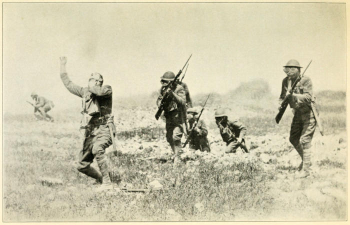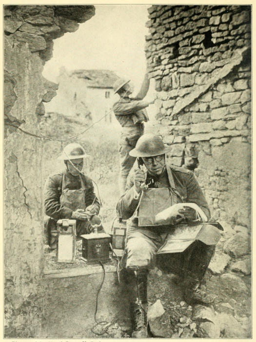| Signal-Corps Men at Work Repairing the Tangle of Copper Wires Which Link the Infantry in the Front-Line Trenches with the Guns | 9 |