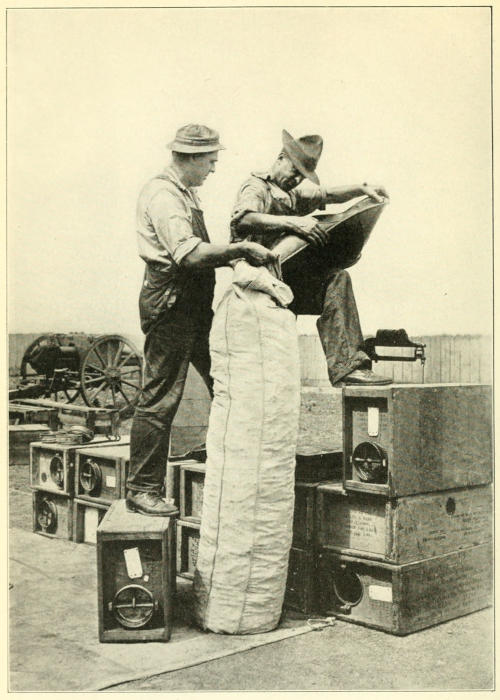 Shortly after the beginning of hostilities steps were taken toward the establishment of three great motor-transport centres: Camp Holabird, about twenty miles from Baltimore, on the shores of Chesapeake Bay; Camp Jessup, at Atlanta, Ga., and Camp Normoyle. The huge assembly and repair shops erected at these camps are perhaps the most complete plants of their kind in existence, being of permanent construction and adapted to the needs of the army for many years to come. At each of these camps storage facilities have been provided for the vast number of motor vehicles which will not be required under peace conditions, but which will be kept in constant readiness for use in an emergency. Practically all motor vehicles destined for service overseas passed through Camp [433]Holabird, where they were uncrated, assembled, put in thorough running order, inspected, registered, and finally loaded aboard ship for transport to France. During the last summer of the war, when the shipment of motor vehicles was at its height, Camp Holabird was worth journeying a considerable ways to see, there being literally acres of vehicles, ranging all the way from huge artillery repair trucks, veritable machine-shops on wheels, to “flivvers” which unsuccessfully attempted to conceal their identity beneath coats of olive-drab. The paint-shops were, incidentally, one of the most interesting features of the camps, the paint being sprayed on the vehicles by means of air-brushes and a hose in little more time than it takes to tell about it. Thanks to this ingenious method, it did not take very much longer to paint a motor car or a truck than it does to polish a pair of shoes. Then there were the trimming-shops, where tops, curtains, boots, and cushions were turned out by the thousand; the supply depots, whose huge steel and concrete buildings were stacked to the ceilings with incredible quantities of tires, tubes, lamps, and other accessories; the repair-shops, with their forges, lathes, and travelling cranes; and the spare-parts department, where, thanks to a remarkably ingenious card-index system, there could be obtained without confusion or delay any duplicate part that might be called for, whether it was a new rear axle for a mobile repair-shop or a tiny cotter-pin for a motorcycle. Though these great shops had been in operation only a few months when the war ended, and though their personnel had been obtained anywhere, [434]everywhere, almost at a moment’s notice, they were probably, everything considered, the best organized and most efficient plants of their kind in the world.