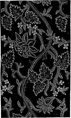 An important point in embroidery is to know what may be to advantage left undone; and as crewel-work is entirely free from all artificial raising, it is merely suggestive of general form.