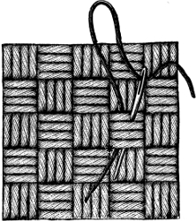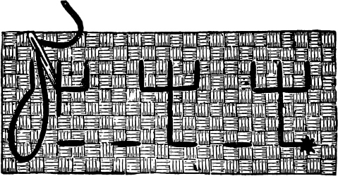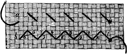 This style of work was much in vogue during the latter part of the eighteenth century, and has recently been revived, and the modus operandi dignified by the name of the South Kensington stitch. But people with great-grandmothers produce pieces of work done in a similar manner; and the stitch is the same as the long stitch in silk embroidery, only longer and more careless.