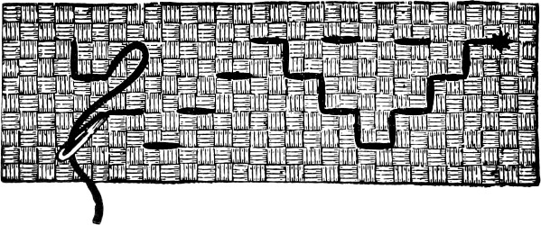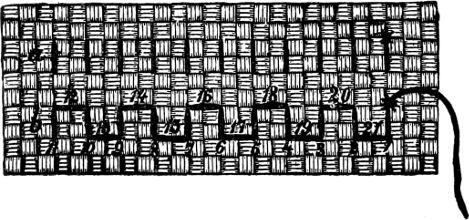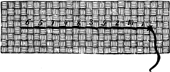 This method of working is to be used when the material is put in a frame; but when the work is done in the hand, it is best illustrated by Figure 2. The easiest and quickest way in this case is to begin at the bottom and work upward—putting the needle through (from the back) at 1, and back again at 2—through again at 3, and back at 4—until the entire distance has been traversed.