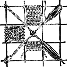 resembles the wrong side of long back-stitching more than anything else; and is illustrated by Figures 1 and 2.