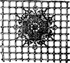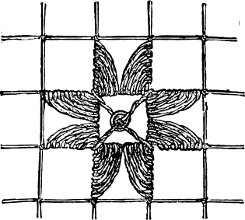 The woodbine honeysuckle can be reproduced in crewels in very natural colors, and we have seen some that almost diffused a June[15] odor about them. They were worked on very fine, soft crash, and intended for a tidy; but a beautiful fire-screen could be made of them on a blue or plum-colored ground.