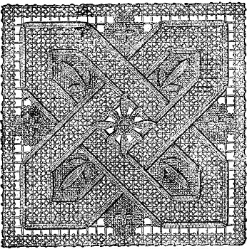 Few would have the time or the inclination for such a piece of work in these days; and “some of our moderns are inclined to think that, in days of old, when the chief employment of a woman’s life was needlework, she must have had a very dull, dreary, monotonous time of it. But when we survey ancient heirlooms, veritable works of art—the smooth, mossy crewel-work, the frost-like point-lace, the shining gold-threaded ecclesiastical work, or even the conventional forms of the now despised cross-stitch—we imagine every happiness and beauty connected with the age of chivalry, as we are conscious of a sense of wonder akin to that felt on beholding some magnificent ancient jewels, or plate, or pictures.”