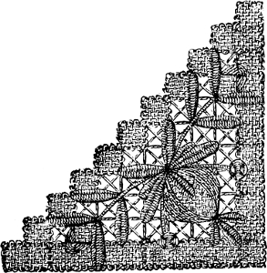 It will be seen that the stitch is very simple, and that much is left to the discretion of the worker. Care must be taken that the worsted is not pulled too tight, nor left too loose, as the effect must be smooth and even—with the curves clearly defined, and the points sharp and complete.