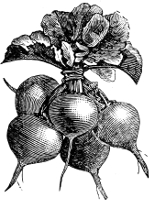 [13] For forcing, Wood’s Early Frame is preferred to the Long Scarlet; it is of same shape, but not so long, and has less foliage. Other good early radishes besides those named are Early Round Dark Red, Half Long Scarlet, Early Oval Dark Red, Early White Turnip, French Breakfast and the White Tipped Turnip Radishes. A variety of these handsome little radishes on the table is both attractive and appetizing.—Ed.