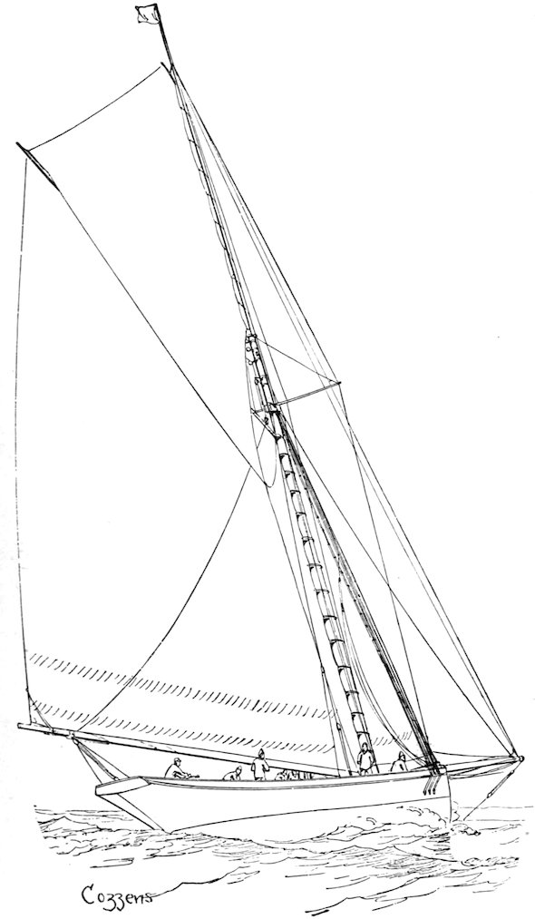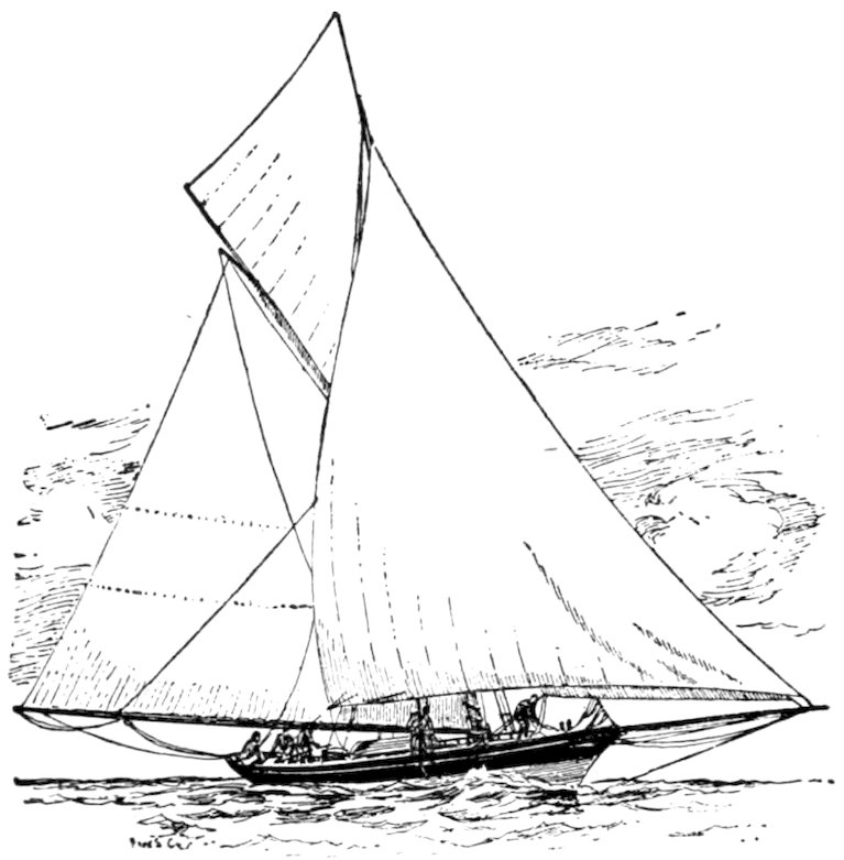 The owner of a small racing yacht taking part in the squadron cruise of the New York Yacht Club, which sometimes extends as far as Bar Harbor, Me., should take care that he carries 293along with him a sufficient “sea kit” for all the emergencies of the voyage. Certain social functions at Newport, for instance, will render evening clothes necessary, if not indispensable, to any yachtsman desiring to participate in the social gayeties of the Cowes of America. A “claw-hammer” coat is my pet abomination, and personally I would never “hoodoo” a racing yacht with any such luxurious superfluity. So strong is my antipathy to this garment of civilization that my will contains a special clause forbidding my undertaker to attire me for the grave in a so-called dress suit, as is sometimes the custom in this country.