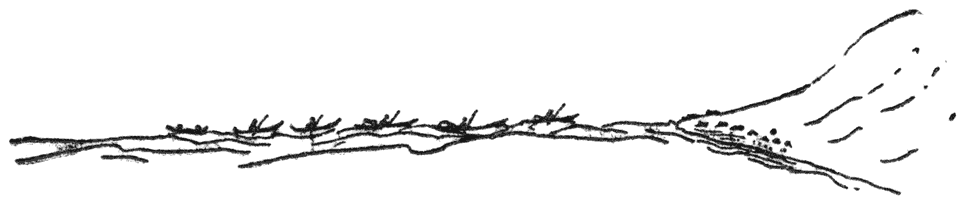 Toe ons die dorpie verlaat, was dit so winderig en ru dat ons weer by Albert-Hawe oorgebly het. Art en Ed en ek het na die steil rotsagtige eiland gegaan om hase te soek. Ons [155]het die eerste heuwel beklim en daar baie spore gesien, maar g’n hase nie.