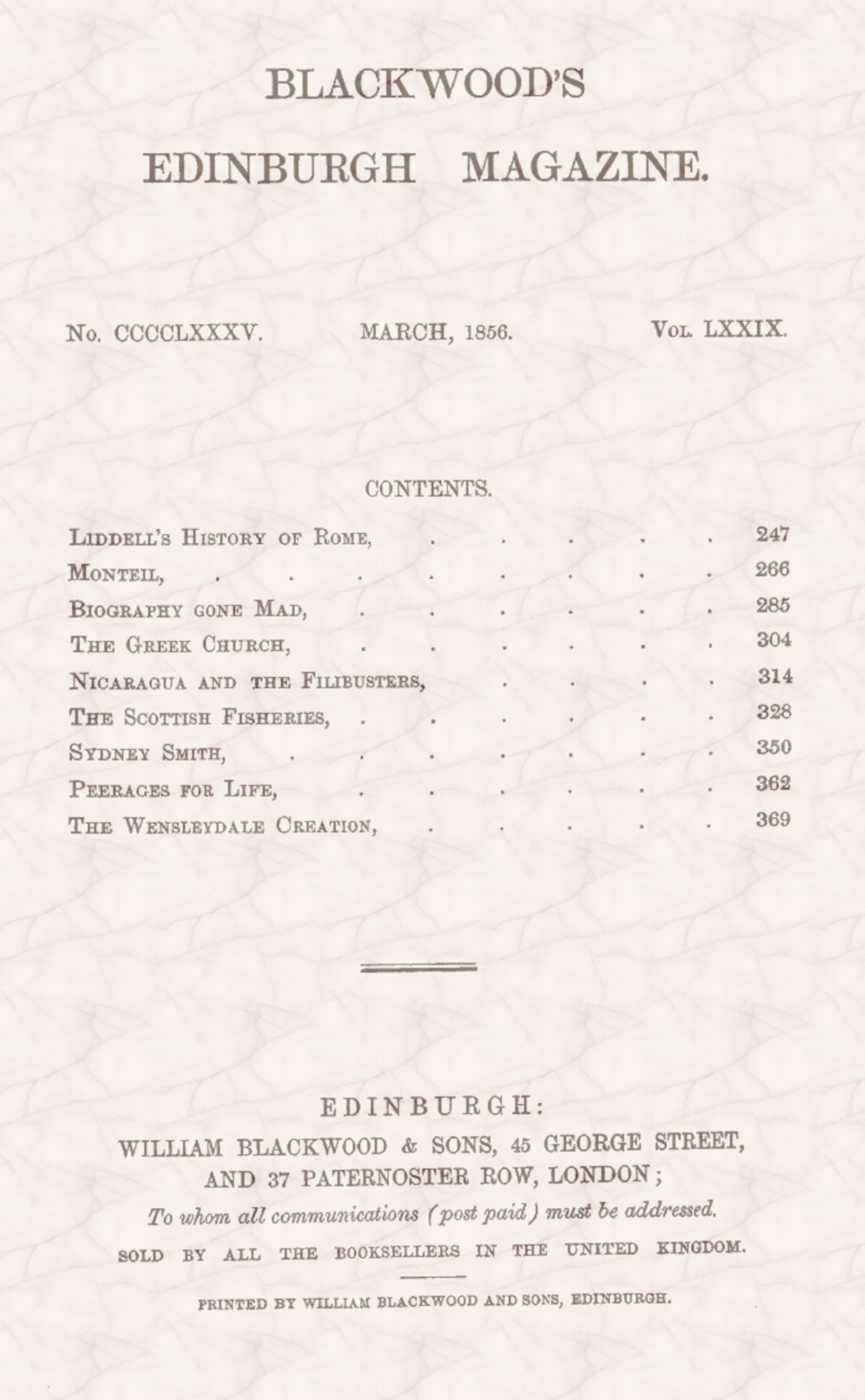 Title: Blackwood's Edinburgh Magazine, Vol. 79, No. 485, March, 1856