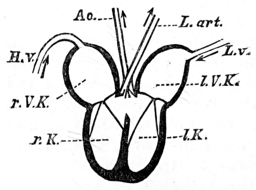 is at most scarcely one-sixth of an inch long, and consists of only three or four joints, often lives in large numbers in the intestine of the dog without injuring its host, but causes huge cysts (from the size of a pigeon’s egg to that of a child’s head) in the liver, lungs, or other organs of man, pig, and ruminants. These cysts are of the type represented 240on the right of Fig. 138. They may prove fatal, owing to the pressure they exert in the organs containing them and the blood-vessels of the same.