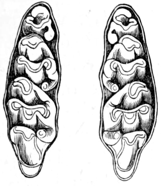 The disease caused by the presence of bladder-worms in the brain is called “gid,” or “sturdy,” also “staggers.” Two stages can be distinguished in it. During the first period the symptoms of disease are chiefly due to the wounds which the larvæ make on the surface of the brain, and the consequent inflammation of the investing membranes. Even in this stage the disease may be fatal, but the symptoms cease as soon as the larvæ cease to move about. The bladder-worms are only able to do harm by the pressure they exert, which is small at first, though it gradually becomes greater. The first stage of gid manifests itself in late summer, the second in late autumn, winter, or spring, according to the rate at which the bladder-worms develop. The symptoms of the first stage are caused by the increased flow of blood to the brain and head generally, resulting from the irritation which the larvæ exert. (Head very hot. Eyes bloodshot. The sheep are sluggish but restless, and carry 239their heads in a strange way, to one side, bent back, or turned up. They often run round in a large circle. There may also be gnashing of the teeth, foaming at the mouth, squinting, convulsive movements, and loss of consciousness.) The symptoms of the disease in its second stage are the result of pressure on the brain and some of the arteries of the brain and skull. (The sheep affected separate themselves from the others, and generally hang their heads. Gaze fixed. Occasional loss of consciousness. Movements strange; run or turn round in a circle. The sheep often staggers and falls to the ground. The bones of the skull become thinner at the place under which the bladder-worm is found, sometimes even as thin as paper.)