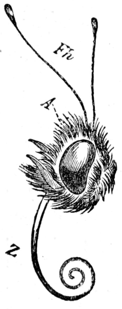 (Fig. 141), is flat, but swollen in the middle, when it contains a large number of eggs, under which circumstances the edges only are flat. The last are of a dirty brown colour, while the middle of the body is greyish yellow. There is a triangular projection at the front end of the body with a sucker at the apex, 241and another at hinder end of the triangle. The outer surface of the body is covered with minute backwardly projecting spines, which present no hindrance to the forward creeping of the body in the bile-ducts, but make backward creeping or gliding impossible.