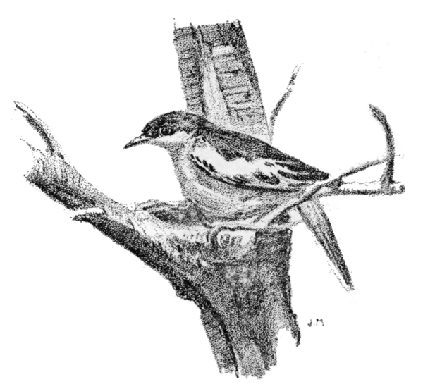 But he has rivals in the wilderness—many rivals, both in voice and appearance. I am not sure that the blue jays are not more lovely to look at. Their silvery bodies and black faces are not so gay, of course, but they are slim and slender, and they float through the tree-tops with wonderful grace. They come in flocks to the wilderness during the winter, and it is a joy to watch them swaying in the tree-tops, [Pg 12]then darting suddenly down to catch an insect on the wing, and up again to their swinging perch. Pity ’tis their voice has no beauty, but is just a querulous squawking note.