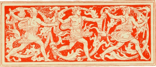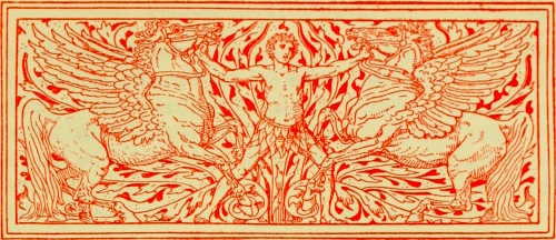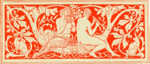 It is strange to think how from the ancient mythological sources in the dim past flow down the little streams that serve[Pg 26] everyday life and humble domestic use. Scattered in the drift, as it were, of a common speech—itself a conglomerate of so many elements—like fossils, how many well-worn fragments we meet of symbolism in proverb, or fable, or allusion. They are common property, the decorations of everyday talk, repeated again and again to emphasise and illustrate the most ordinary conversation, like the little woodcut devices used by the early printers over and over again to enliven their close pages of type.