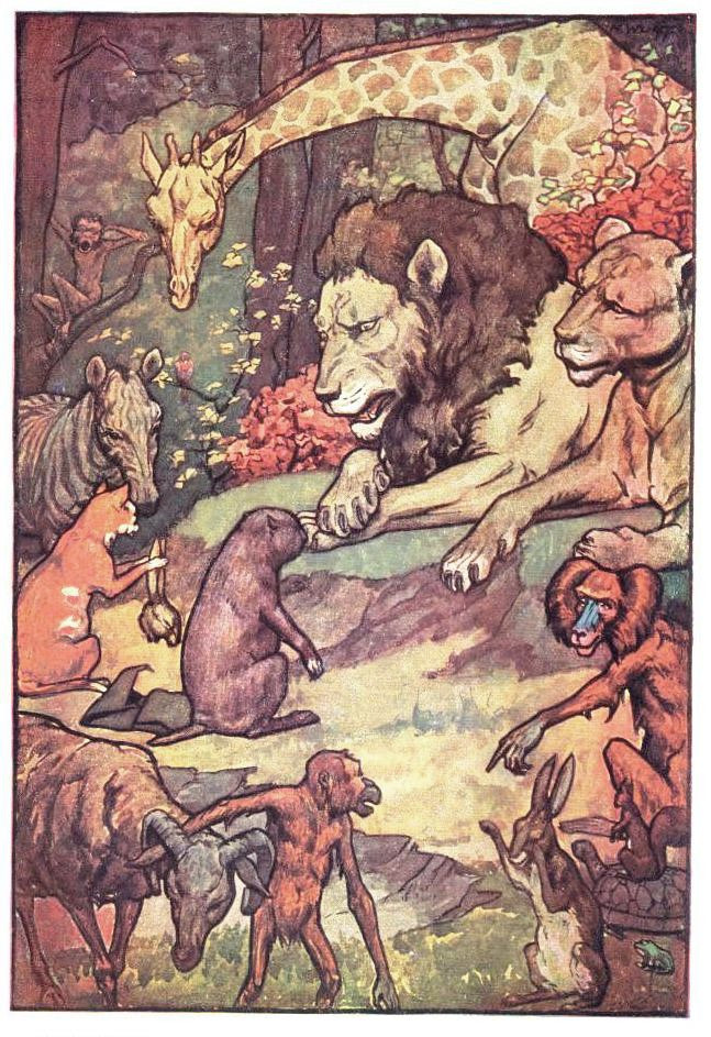Da alles im Saal ruhig blieb und sich keiner zum Wort meldete, fuhr Reineke fort: »Seht, gnädigster Herr und König! Es kommen so viele Sachen vor Euch, daß Ihr unmöglich alles im Gedächtnis behalten könnt. Oder erinnert Ihr Euch vielleicht noch des großen Dienstes, den mein Vater dem Euren erwies? Euer Vater lag im Sterben, und mein Vater rettete ihm das Leben. Ich glaube zwar, Ihr könnt Euch dessen nicht entsinnen, denn Ihr wart damals erst 3 Jahre alt.