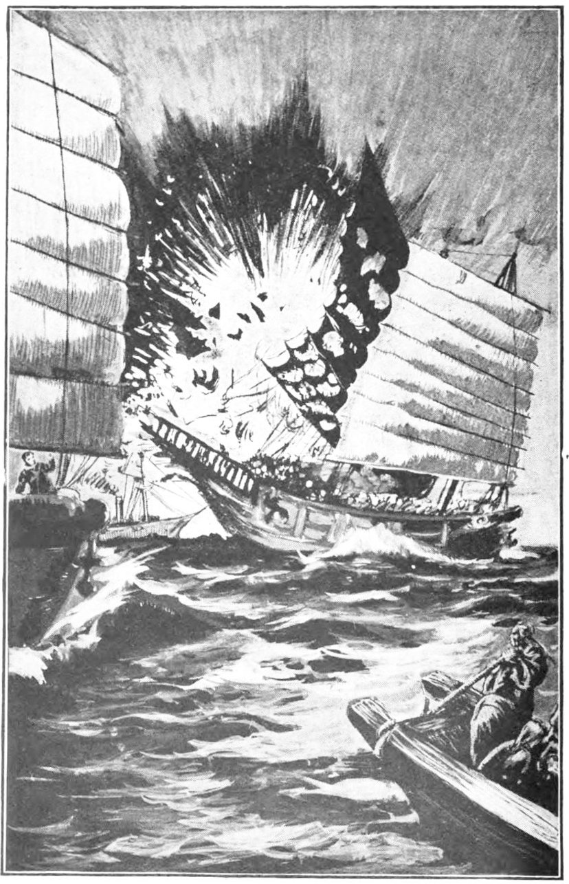 The glare died away, but not before he had caught a fleeting glimpse of the dark shape of a vessel. She carried no lights of any kind, so far as he could see, and what sort of craft she was he could not determine. But she was a ship of some kind, he could swear to that.