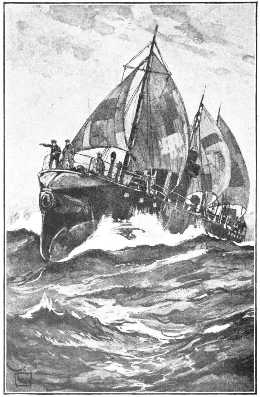 Travers was on the bridge in less than five seconds, and when the sub had told him what he had seen he went to the engine-room telegraph and increased the revolutions of the engines to fifteen knots.