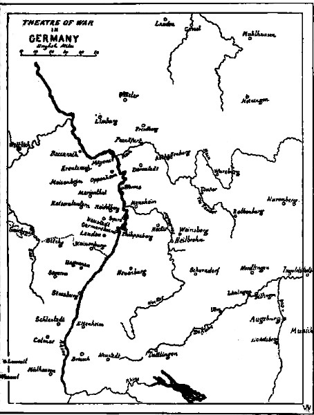 On the 26th September the King’s army, leaving Erfurt, began to ascend the Main, and on the 10th October they took the episcopal fortress of Würtzburg by assault. This calamity drew Tilly in hot haste to the south. Towards the end of October his army, 40,000 strong, was bivouacked along the Tauber, where, on the night of the 23rd, Gustavus again cut up three Imperialist cavalry regiments which had bivouacked in an exposed position.[8] After a futile demonstration against Ochsenfurt, where he lost heart on discovering the Swedes drawn up beyond the Main, Tilly retreated in the direction of Nuremberg, when Gustavus, leaving Horn to observe his movements, sped along that river to Frankfort, into which capital he made his triumphal entry on the 17th November 1631. Meanwhile his antagonist, as if crushed in spirit by the swift ruin which had overtaken his fortunes, raided about Franconia at random, and seemed utterly incapable of arriving at any fixed determination. Finally he imagined the assault of Nuremberg; but a Protestant soldier, applying a slow-match to his store of gunpowder, blew it into the air together with the projects of his chief, who forthwith left Nuremberg and cantoned his troops in winter quarters around Nördlingen. The Swede, however, was more energetic, and crossing the Rhine at Oppenheim in defiance of the troops of Spain, gained possession of the great fortress of Mentz as the reward of his valour and activity. Here Gustavus spent Christmas with his Queen and Chancellor, Oxenstierna, who had come from Sweden to meet him. He was at the high pitch of his prosperity, courted by the petty princes of Germany and by the envoys of more considerable Powers. He was dreaming, it was said, of a Protestant Empire. But France, his ally, had taken umbrage at his successes. Richelieu endeavoured to arrange a pacification, but the sagacity or ambition of Gustavus impelled him to decline these overtures.