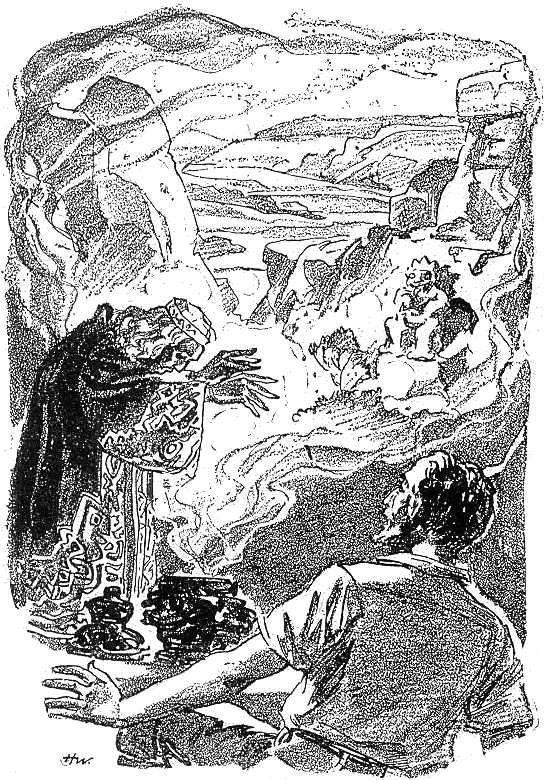 He had examined my arm, had dressed the cuts, which were already healing, and he had declared that in three days more it would be as well as ever. Then, as he turned to go, he glanced keenly at me. “My son,” he said, “though the Monster of Sacrifices will never more devour a maiden of Mictolan, yet the flames still stream from the temple. The Bridge of Light spans the chasm. The Way of the Symbols is open.”