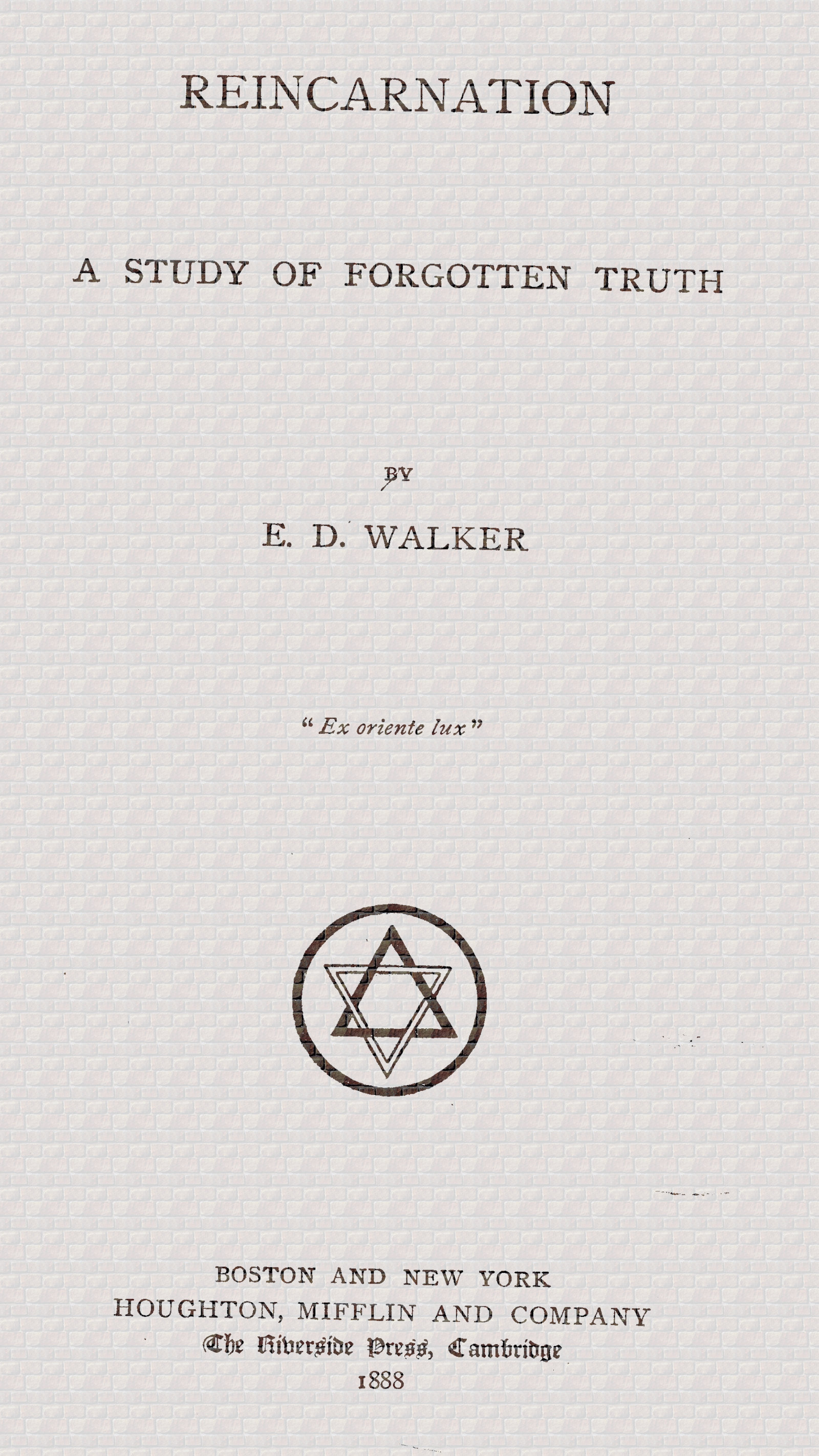 8But the western fondness for democracy does not hold in the domain of thought. The fact that the majority of the race has agreed upon reincarnation is no argument for it to an occidental thinker. The conceit of modern progress has no more respect for ancient ideas than for the forgotten civilization of old, even though in many essentials they anticipated or outstripped all that we boast of. Therefore we propose to treat this subject largely from a western standpoint.