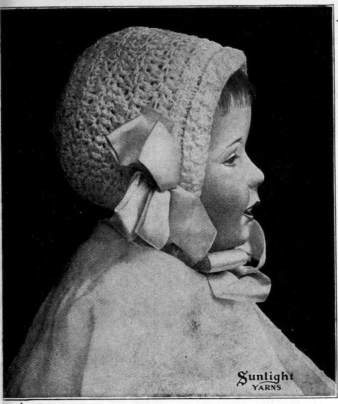 SUNLIGHT Angora works up very beautifully into infants’ soft hoods, Tam o’Shanters, infants’ muffs and women’s mitts, caps and toques. It gives a soft, fluffy surface.