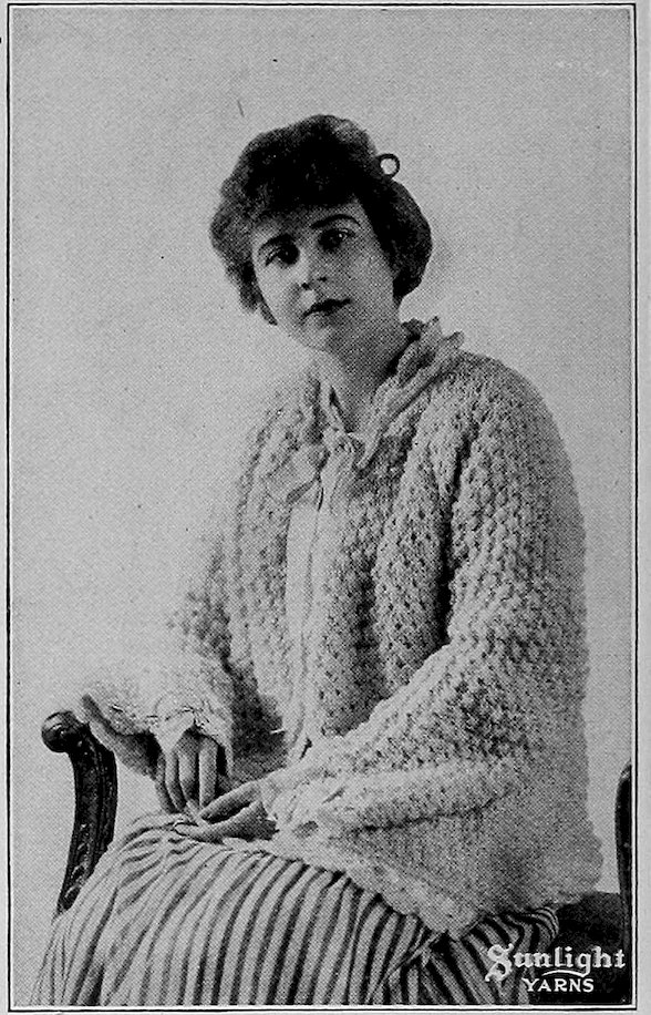 Expert advice on knitting and crocheting may be had by addressing The Thread Mills Co., Sunlight Yarn Dept., P. O. Box 428, Chicago