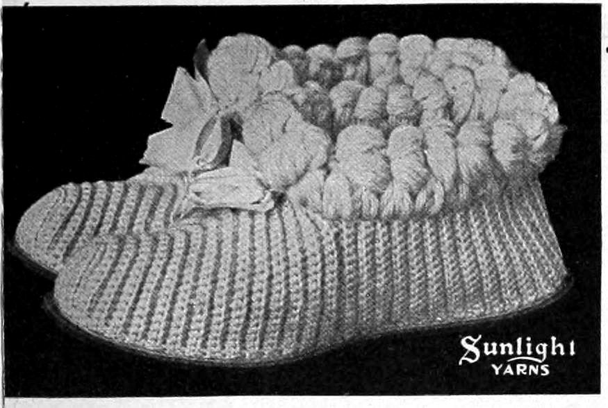 SUNLIGHT Four-fold Germantown is ideal for crocheting and knitting sport scarfs, afghans, slippers, toques, aviation caps, shawls, fine sweaters, mufflers, tying comforts, and innumerable other beautiful and serviceable articles.