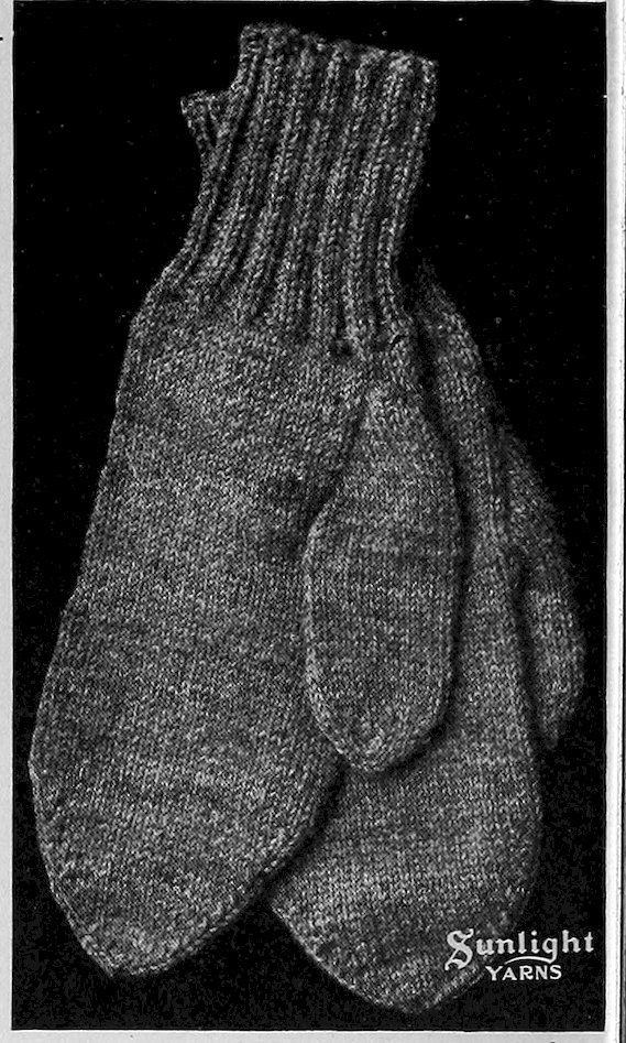 SUNLIGHT Spanish Worsted—four-ply—is made of a special selection of fine, hard wearing wools. It is spun into a finer thread than the German Knitting Worsted, is used for much the same purposes, but is particularly adapted for knitting gloves and mittens, men’s socks, women’s stockings, sweaters, etc. Sunlight Spanish Worsted is made in a complete line of colors and mixtures.