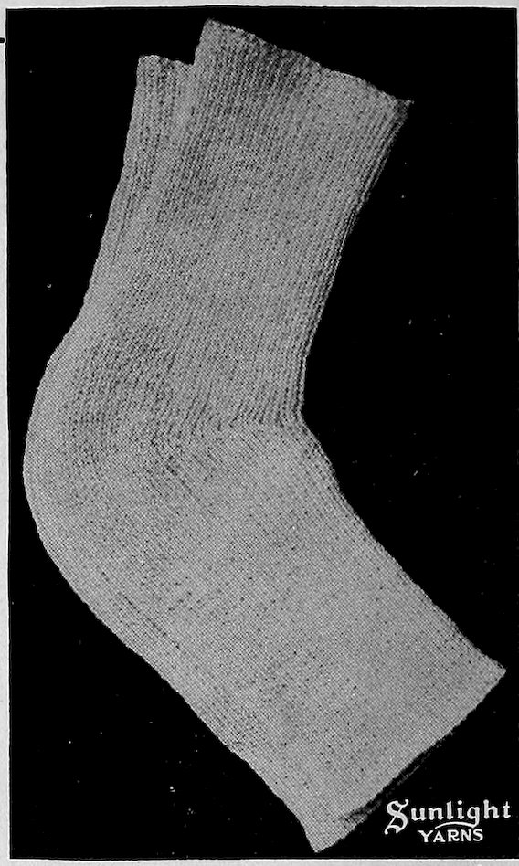 SUNLIGHT German Knitting Worsted is well known for its extreme wearing qualities. The greatest of care is exercised to produce a round, even thread with just the right amount of twist to make it knit up well. It is made in a full line of colors, prints and mixtures, and is used for knitting hose, gloves, sweaters and other articles that must stand wear and great exposure.