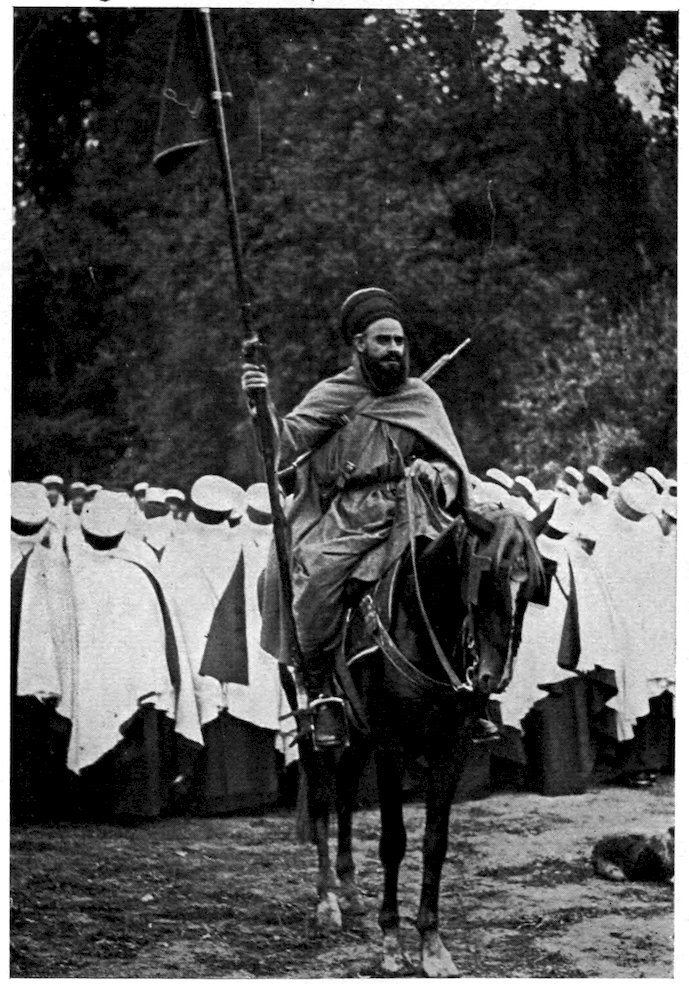 When only a short distance in the rear of the firing-line we left the car and proceeded on foot down a winding country road which debouched quite suddenly into a great, saucer-shaped valley. Its gentle slopes were checkered with the brown squares of fresh-ploughed fields and the green ones of sprouting grain. From beyond a near-by ridge came the mutter of artillery, and every now and then there appeared against the turquoise sky what looked like a patch of cotton-wool but was in reality bursting shrapnel. The far end of the valley was filled with what appeared at first glance 8to be a low-hanging cloud of gray-blue mist, but which, as we drew nearer, resolved itself into dense masses of troops drawn up in review formation—infantry at the right, cavalry at the left, and guns in the centre. I had heard much of the invisible qualities of the new field uniform of the French Army, but I had heretofore believed it to be greatly inferior to the German greenish gray. But I have changed my mind. At three hundred yards twenty thousand men could scarcely be distinguished from the landscape. The only colorful note was struck by the dragoons, who still retain their suicidal uniform of scarlet breeches, blue tunic, and the helmet with its horse-tail plume, though a concession has been made to practicality by covering the latter with tan linen. The majority of the French woollen mills being in the region held by the Germans, it has been possible to provide only a portion of the army with the new uniform. As a result of this shortage of cloth, thousands of soldiers have had recourse to the loose corduroy trousers common among the peasantry, while for the territorials almost any sort of a jacket will pass muster provided it is of a neutral color 9and has the regimental numerals on the collar. Those soldiers who can afford to provide their own uniforms almost invariably have them made of khaki, cut after the more practical British pattern, with cap-covers of the same material. Owing to this latitude in the matter of clothing, the French army during the first year of the war presented an extraordinarily variegated and nondescript appearance, though this lack of uniformity is gradually being remedied.
