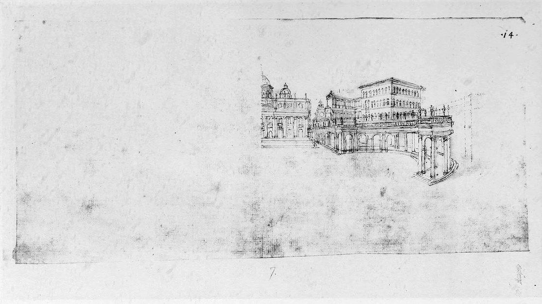 16. In the Brandegee Collection. It was published by Signor Busiri-Vici in his work La Piazza Vaticana, Rome, 1890, and by Fraschetti, op. cit., p. 307. The latter gives reduced and poor reproductions of the drawings. We have thought it worth while therefore to reproduce them on a larger scale; see Part III of this Study.