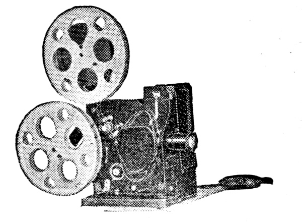 Four hundred feet of this film gives the same period of projection when used in the Kodascope (Figure 10) as a thousand feet of ordinary standard film, and as the film which is sent to the manufacturer for development, is reversed to a positive by chemical treatment, printing on a regular positive film is unnecessary. For this reason the expense is only about ⅙ that of making standard size motion pictures.