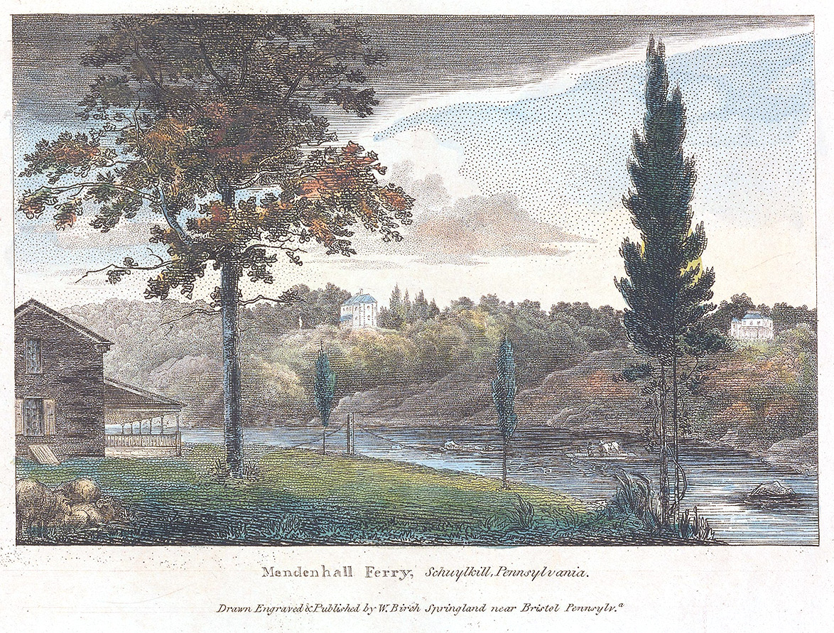 This beautiful spot close upon the falls of Schuylkill, and central to the neighbouring seats of Philadelphia, is one of nature’s choicest retreats. Mr. Mendenhall, to accommodate the citizens, has opened his house for public entertainment. The two seats on the bank, are those of Mr. Joseph Sims, and the justly celebrated Dr. Physick, the latter is called very appropriately Fairy Hill.