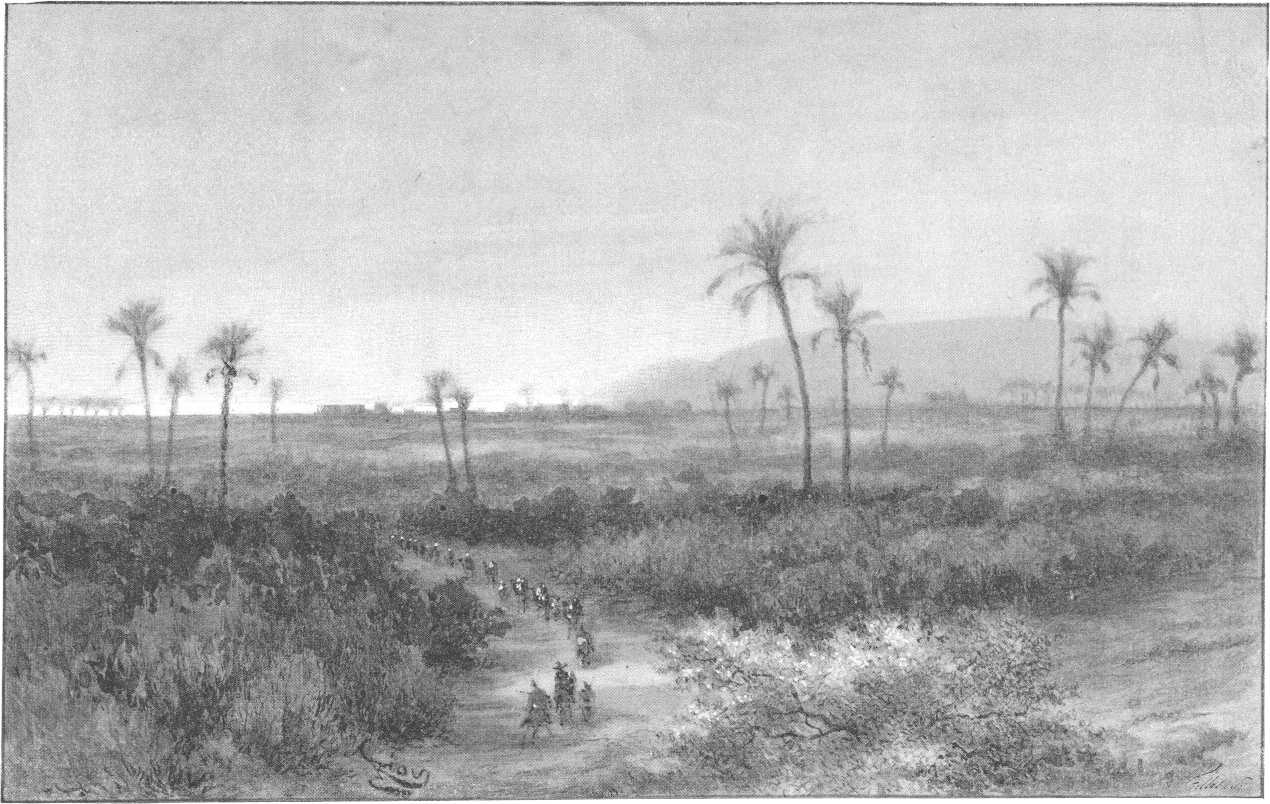 A peine reposé de sa dure campagne, et tandis qu’il en rédigeait le récit, Monteil méditait d’autres grands projets. Dès qu’il eut la liberté d’y donner suite, l’an dernier, il forma une colonne et repartit pour réaliser son plan de pénétration entre le Congo et le Nil supérieur. A mi-chemin, un contre-ordre lui donna un nouvel objectif :[IX] on lui enjoignait de se porter sur la côte d’Ivoire et de remonter vers le Kong pour barrer les routes du Sud à Samory. Il bataille à cette heure contre notre insaisissable adversaire. Le 30 octobre, avant de s’enfoncer dans l’intérieur, il m’écrivait de Grand-Lahou : « Ici, la tâche a été rude, elle m’a semblé un instant impossible. Faire remonter à plus de 500 kilomètres de la côte près de 1200 hommes, des vivres pour un an, de la cavalerie, de l’artillerie, des animaux, sans routes tracées, avec des rivières à peine reconnues, utilisables sur de très courts parcours, pour ne commencer les opérations qu’après une période de préparation qui aurait à elle seule absorbé les forces d’énergie et d’endurance de tout le personnel ; tout cela me semblait au-dessus de nos efforts. Et cependant, j’ai la presque certitude d’y parvenir aujourd’hui ; mais quel dévouement, quel entrain de la part de tous, du plus petit au plus grand ! C’est merveilleux ! Notre officier, croyez-moi, est le premier du monde. » Je le crois ; il le prouve.