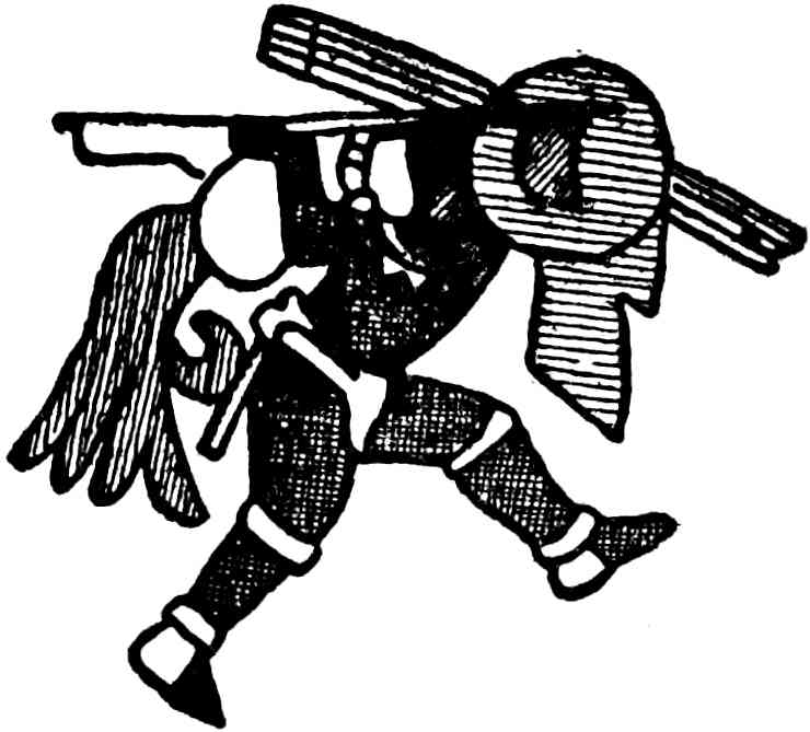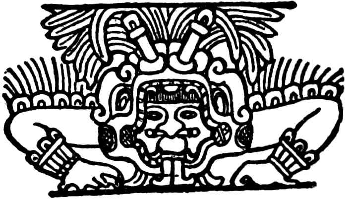 It is true that the horrible rite of human sacrifice obtained some hold among them; but this was as nothing compared with its prevalence among the Aztecs of highland Mexico. Their sculptures, paintings [318] and pictured books are the work of a religious and peacefully inclined people. There are, indeed, a few representations of warriors leading home captives; but the figure of the soldier in Maya art is negligible. That of the priest is ubiquitous. The Maya War God, the “Black Captain,” enjoyed no such importance as did the bloody Huitzilopochtli in the pantheon of the Aztecs.