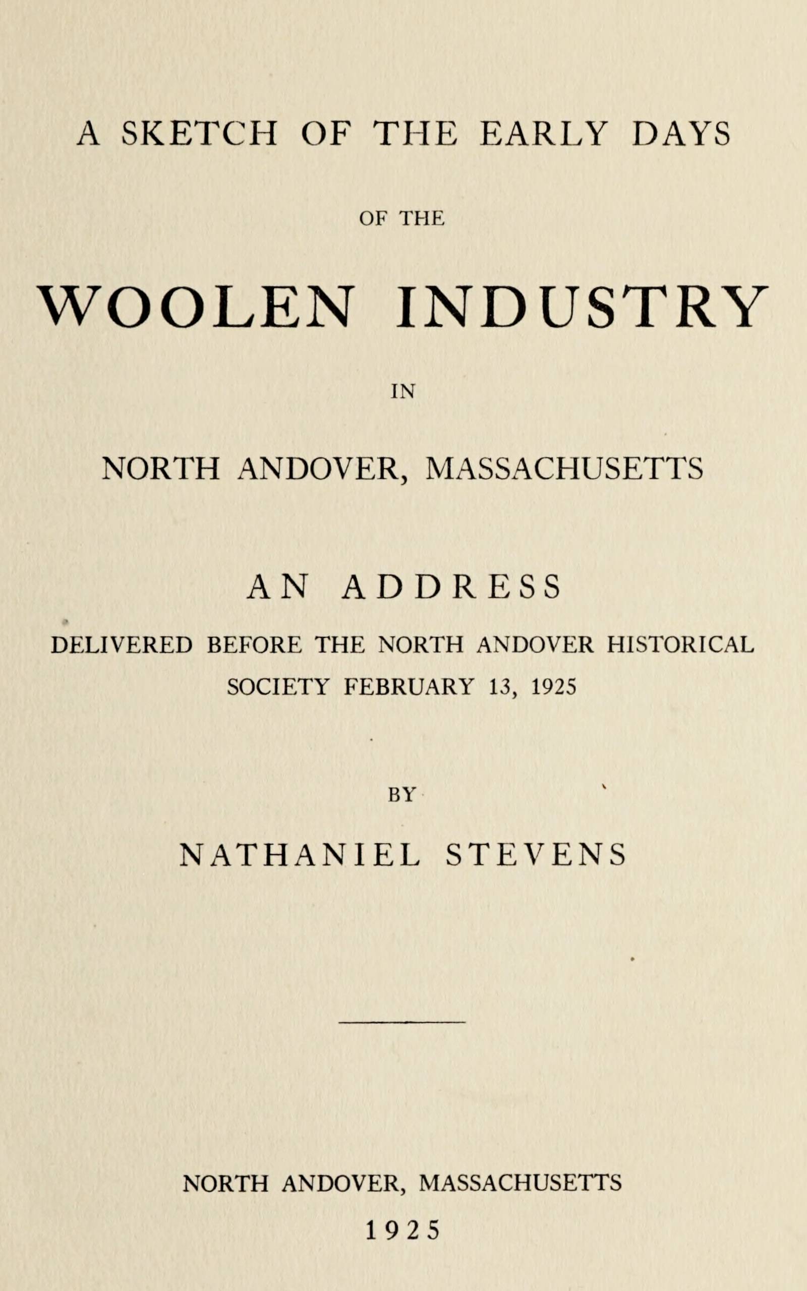 Title: A sketch of the early days of the woolen industry in North Andover, Massachusetts