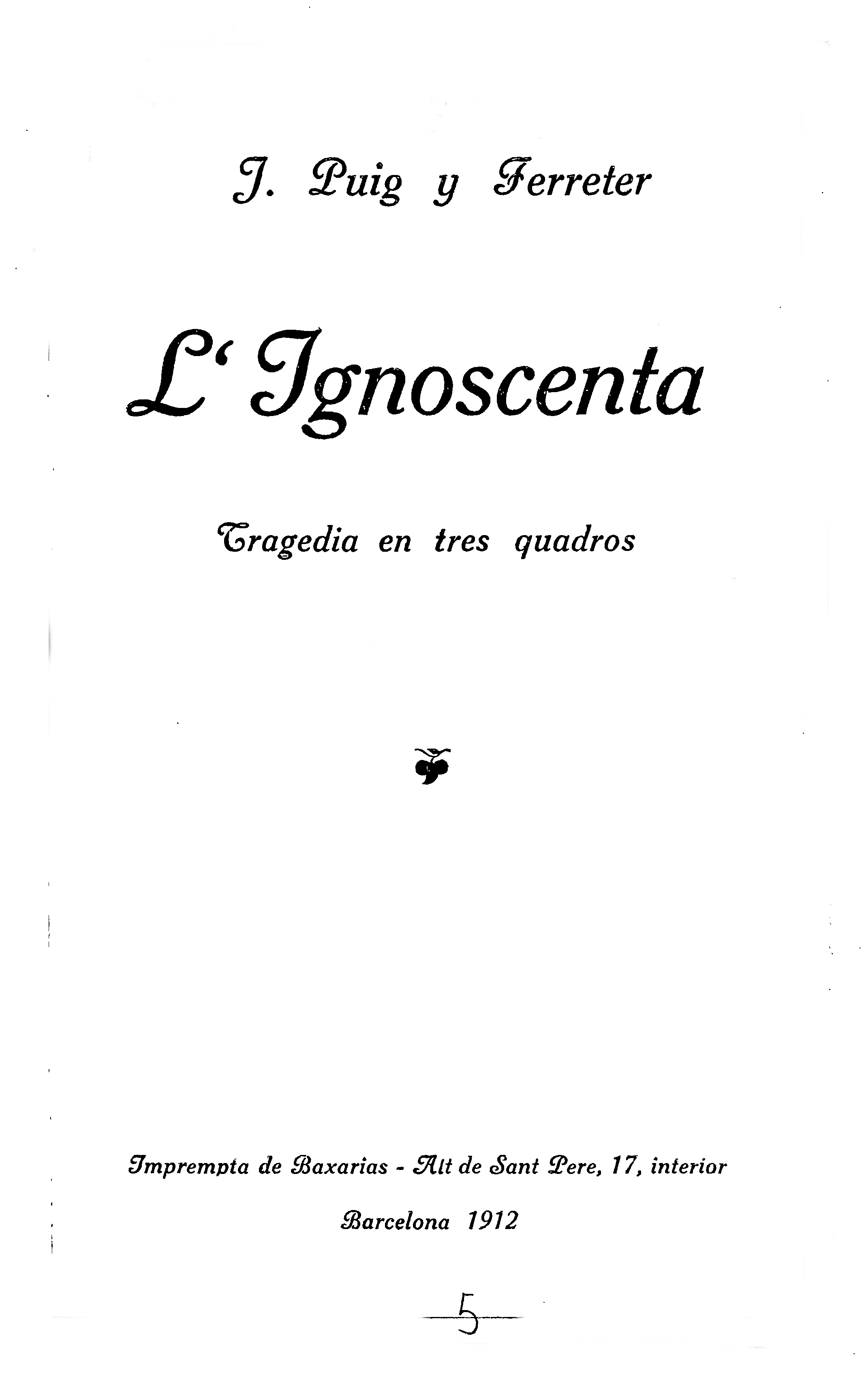 Original publication: Barcelona: Imprempta de Baixarias, 1912