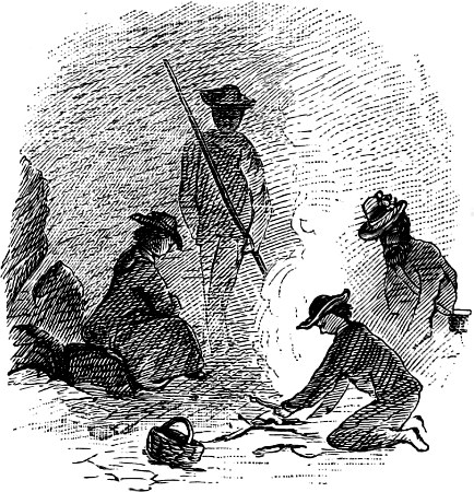 The island itself is full of wild-fowl—a “whir-r-r!” and away go a large flock skimming through the air, their[367] white wings gleaming like silver in the morning light; whilst here and there web-footed “water-ravens,” about the size of a small goose, are still seen roosting on the trees or standing on sandy promontories watching for fish.