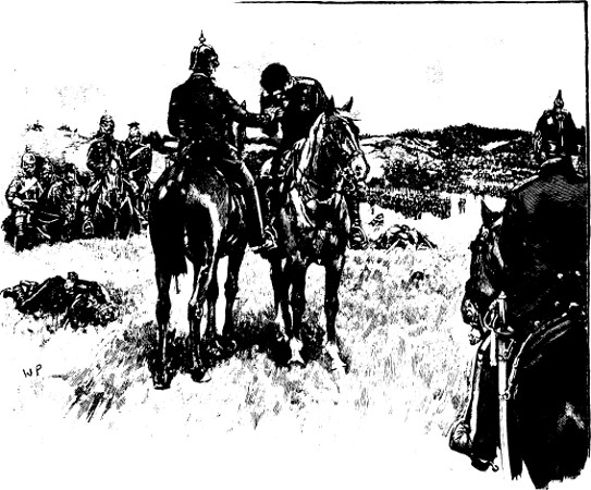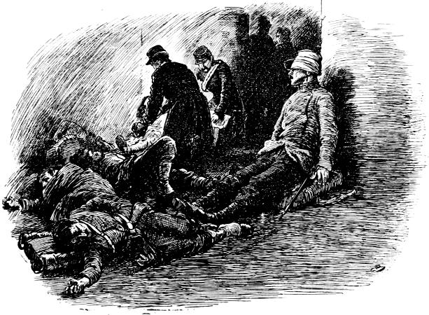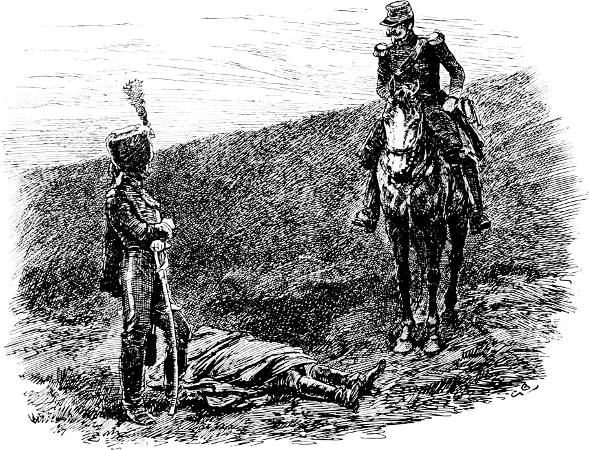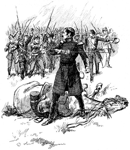 Then, as a happy look came into his handsome face, the staff crowded round him and saw the shocking state of his wound. The shoulder was completely shattered, and the left arm hung by a piece of skin; the ribs over the heart were broken and bared of flesh, while the muscles of the breast were torn into shreds and strips, among which the hilt of his sword had got entangled.