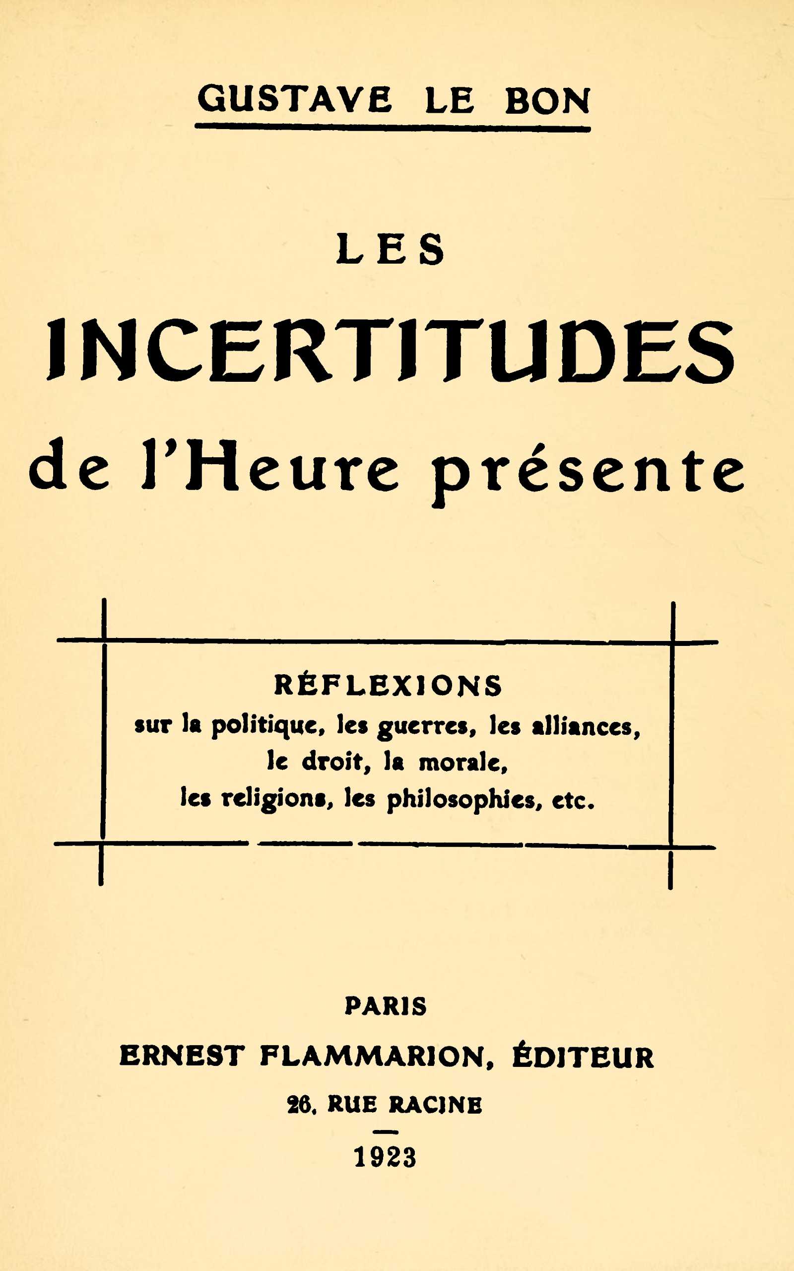 Les faits leur prouvèrent bientôt que la logique savante des professeurs ne régit pas encore l’Histoire. Les logiques affective et mystique qui l’orientent obéissent à de tout autres lois. Nous aurons plus d’une fois à en marquer la nature dans cet ouvrage.
