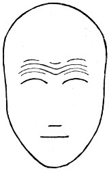 Figure 100 is a diagrammatic representation of pain, expressed only by changes in the neighbourhood of the inner part of the eyebrow (contrast with Fig. 102 following).