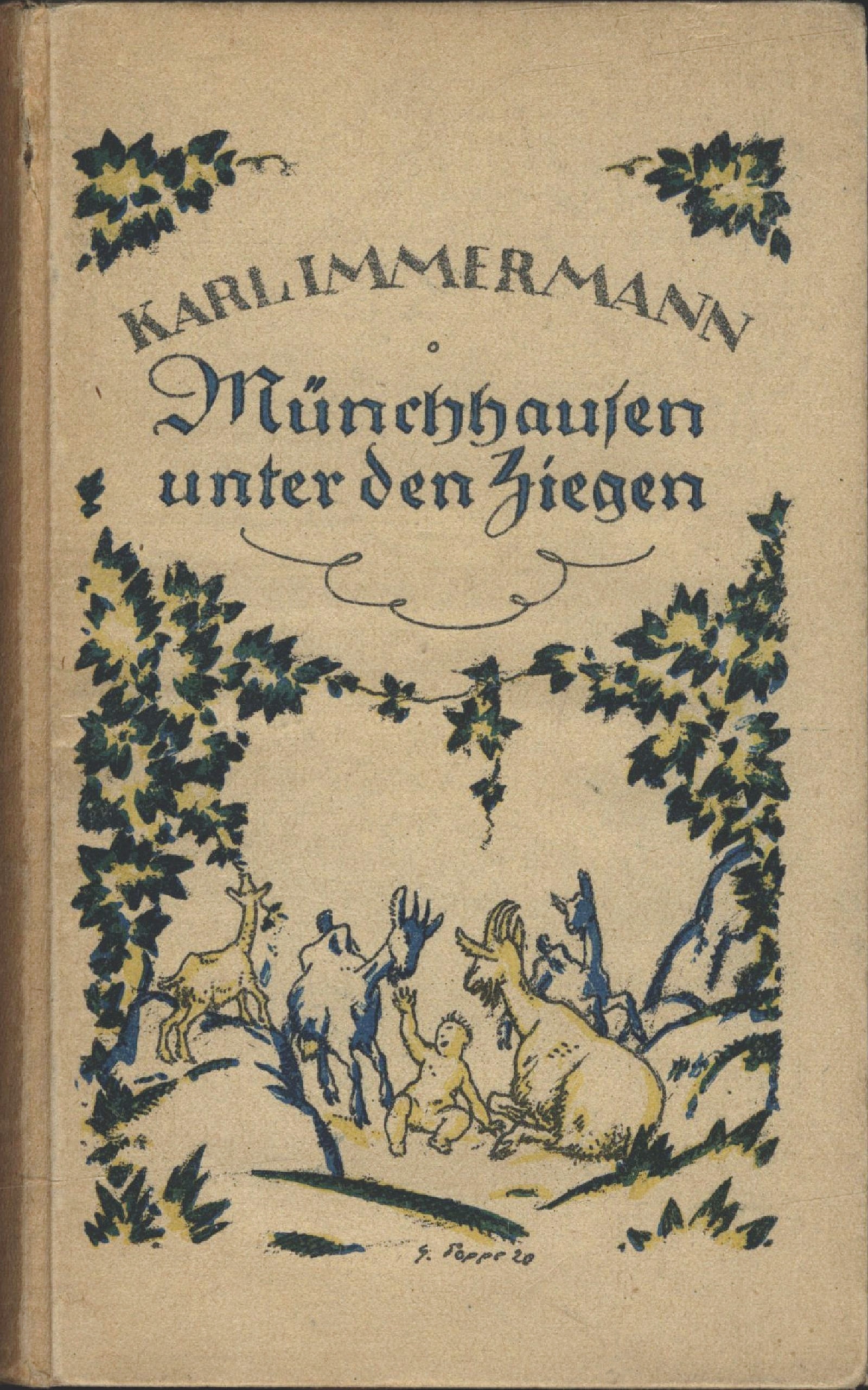 In den nächsten Tagen besuchte ich mit den helikonischen Ziegen und ihren Zicklein die Weide. Ich muß ihnen das Zeugnis erteilen, daß sich die Ziegenmütter gegen mich immer gütig und liebevoll betrugen, und daß auch ihre Kinder nicht allzu arg mit mir umgingen, obschon diese freilich, mutwillig, wie die Jugend einmal ist, allerhand neckende Possen trieben, welche auf mich Bezug hatten, zum Beispiel sich gegen mich bäumten, mir über den Kopf wegsprangen, nach mir stießen, und was dergleichen Schalkstorheiten mehr waren, die ich als gebildetes Kind gebildeter Eltern nur verachten konnte. Du bist unter Ziegen, sagte ich zu mir selbst, wenn der Grimm in mir überwallen wollte, vergiß das nie[S. 35] kleiner Münchhausen, du sauer zubereiteter Wurm deines Vaters. Ich fühlte, daß ich mich dem Zustande, in den mich einmal die Fänge des Geiers und die Kugel des großmütigen Engländers geworfen hatten, anbequemen müsse, versuchte also zuvörderst auf allen vieren zu laufen, da ich ohnhin auf meinen beiden kleinen menschlichen Füßen noch nicht recht fortkommen konnte, und bestrebte mich außerdem, auf jene bäumenden, springenden, stoßenden Scherze einzugehen, freilich nicht ahnend, wohin dieses Anbequemungssystem führen sollte.