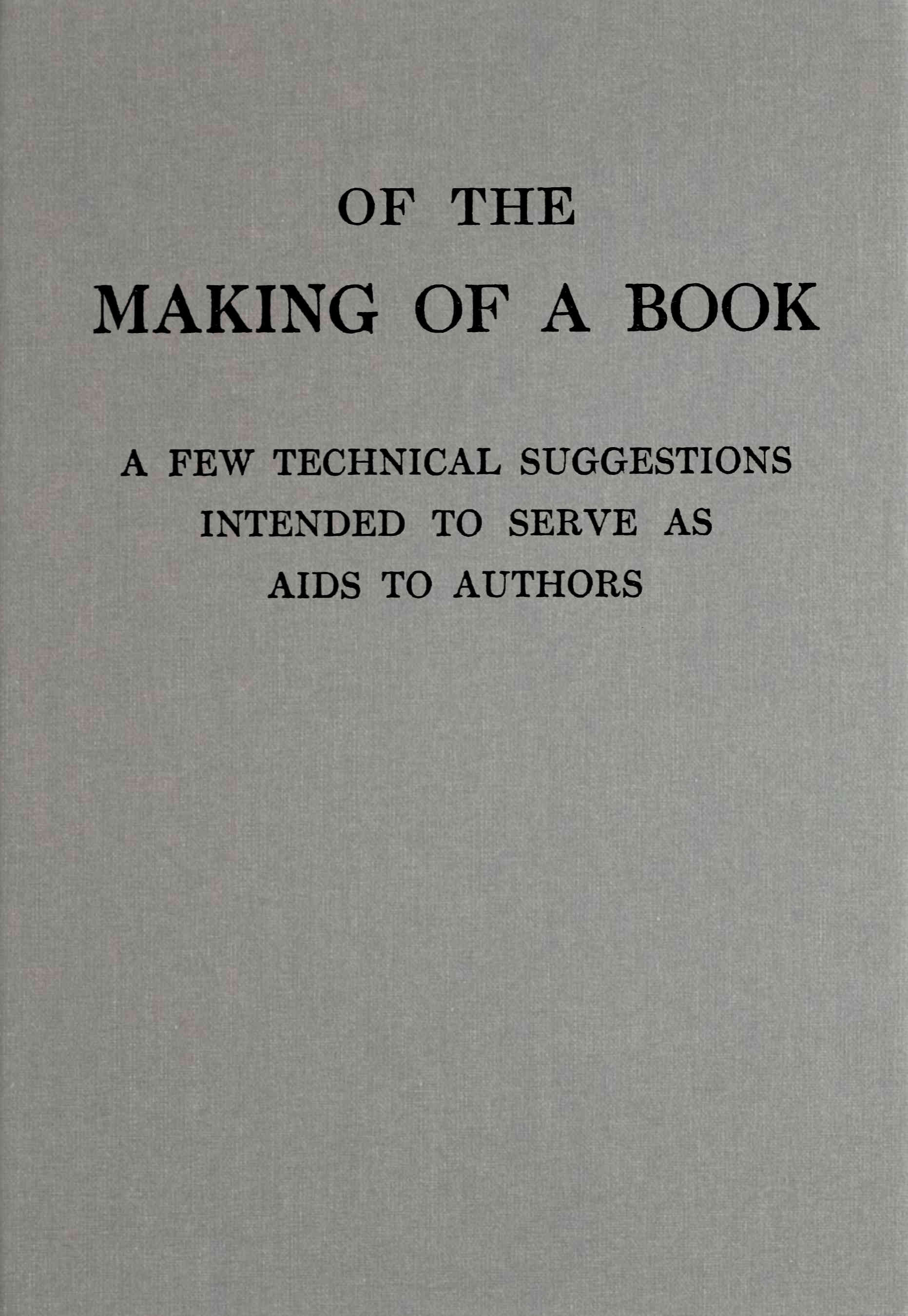 To authors who are strangers to the details of type-setting and “make-up,” perhaps no apology for the intrusion will be necessary. It comes constantly within the experience of publishers to be asked for information about these matters, and while it is a pleasure always to give it, a brief conversation or a few letters often fail, [5]on the one hand to make the point clear, and on the other to cover the necessary ground.